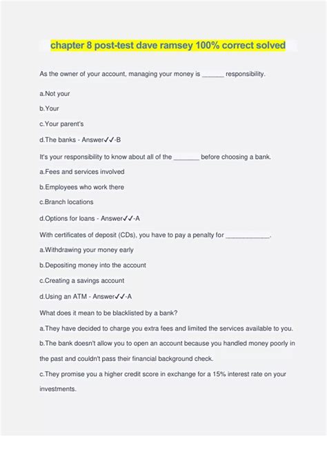 Read Dave Ramsey Chapter 8 Money In Review Answers Epub